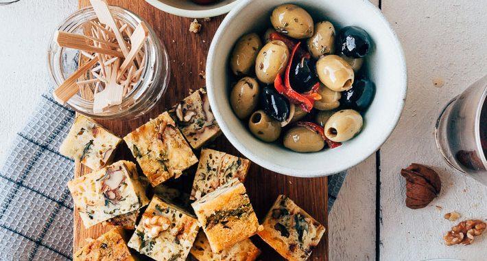 Uit de oven kun je de hartige cake met kaas het beste even laten afkoelen op een taartrooster. Of een ander roostertje waar de lucht onderdoor kan. Zo blijft de korst van cake een beetje knapperig. Daarna kun je hem eerst in dikke plakken snijden en vervolgens in blokjes! Een flinke berg maken op een mooi bordje of leuk plankje, prikkers er naast en dan kunnen ze zo op de borrel tafel! En wat er overblijft neem je lekker mee als lunch!