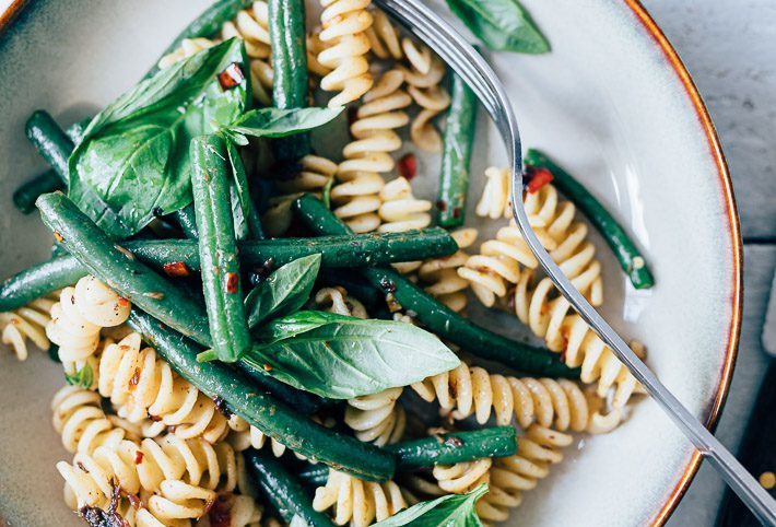 Het lijkt heel eenvoudig dit recept, dat is het ook, maar uit enthousiasme voor hoog vuur en nog sneller klaar willen zijn kan het ook flink misgaan. Toen ik de traditionele variant van dit gerecht voor het eerst maakte was ik iets te enthousiast met het vuur onder de pan. Ik kook graag op hoog vuur moet je weten. Bij dit soort gerechten moet ik mezelf altijd ongelooflijk goed inhouden en ook eens een ander pitje gebruiken op het fornuis. De bedoeling is dat de knoflook smaak afgeeft aan de olie, en geen verbrande smaak. Waarschijnlijk weet je wel dat knoflook heel snel verkleurd. Zet de pan op een zo laag mogelijk vuur (of electrische stand), een vlamverdeler zou zelfs heel handig zijn. En dan komt het helemaal goed. Eigenlijk is het best grappig, het is een snel gerecht maar toch moet je er rustig aan mee doen!