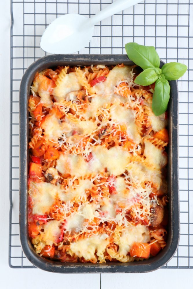 is. Een echte makkelijke maaltijd, waar ik eigenlijk niet eens over na denk. Pasta komt hier op tafel als ik het zelf ook even niet weet. En pasta is altijd goed, ook bij de meiden. Dus meestal draai ik dan aan het einde van de middag een pasta in elkaar, en dan is er geen tijd meer om foto’s te maken. Dat gaat vanaf nu anders.... Om te beginnen deel ik deze makkelijke pasta uit de oven met pompoen met je. Een heerlijk herfstgerecht!