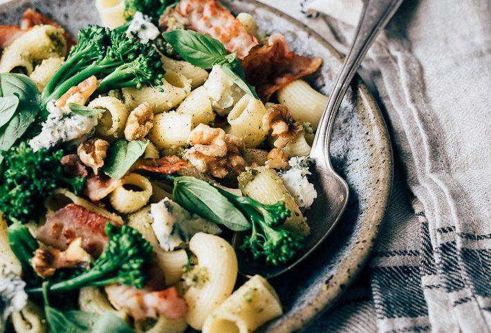 De pesto maak je zelf. Je doet alle ingrediënten voor de pesto behalve de olijfolie in het hakmolentje van de staafmixer. Dan doe je er beetje voor beetje de olijfolie bij tot dat de pesto smeuïg genoeg is. Het is altijd lastig om exact de hoeveelheid olijfolie aan te geven. Sommige noten nemen namelijk wat meer olie op dan anderen. Wanneer je mijn verhouding niet smeuig genoeg vindt voeg dan gewoon nog wat extra olijfolie toe. Vergeet niet op smaak te brengen met wat zout! Over zout gesproken.. Kook de pasta ook in flink gezouten water. Veel mensen koken hun pasta met te weinig zout. De Italianen gooien er zelf ook echt een flinke hoeveelheid zout in om de pasta op smaak te krijgen. Die gaan niet achteraf met zout aan de gang. Het meeste zout verdwijnt bij het afgieten, dus je hoeft echt niet bang te zijn dat je te veel zout binnenkrijgt. En wat dan de graadmeter is? Ik doe altijd de Noordzee, inderdaad goed zout dus!