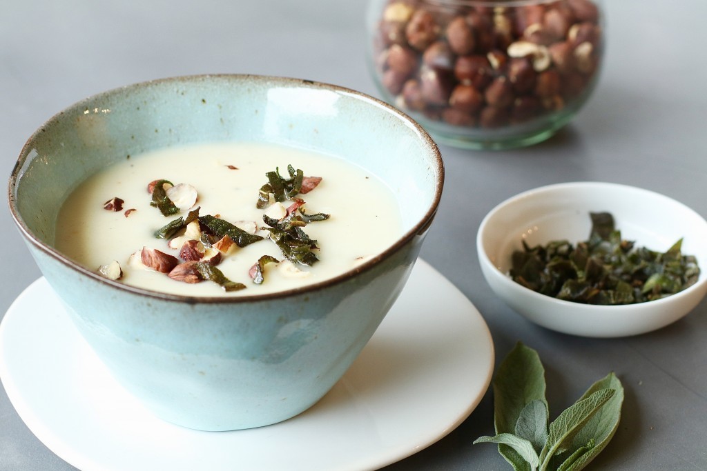 Afgelopen dinsdag gaf ik een etentje voor vriendinnen en ik vind het dan altijd leuk om meerdere gerechten op tafel te zetten. Zo maakte ik courgetteboten uit de oven met geitenkaascrème en kip, homemade gnocchi van pompoen met truffel en deze lekkere soep van pastinaak. Beloof je mij dat je nóóit meer kant en klare soep uit zak koopt? Zelf soep maken is zo makkelijk en zoveel lekkerder. Als culinaire touch frituurde ik wat salieblaadjes in een koekenpan. Pastinaak en salie gaan onwijs lekker samen en die knapperige blaadjes salie geven je soep net iets extra’s. Oh, en kruimel er ook wat gehakte hazelnoten over. Jum! Dit recept is voor vier personen dus halveer het recept als je met zijn tweetjes eet.