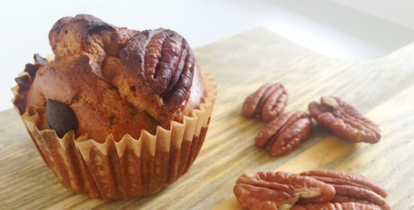 Met deze pecan speculaas muffins blijven we in de sinterklaassferen! De vegan glutenvrije pepernoten van Sanne waren heel erg welkom, maar wat dacht je van deze healthymuffins? Er zit geen geraffineerde suiker. De banaan en dadels zorgen al voor meer dan voldoende zoetigheid. Ik ben sowieso zelf niet van de überzoete baksels, maar een klein beetje zoet is altijd wel lekker. Medjool dadels zijn het lekkerste in bakrecepten omdat ze van zichzelf al een karamelachtige smaak hebben en zacht zijn. Maar gewone dadels doen het ook prima, al zou ik deze wel eventjes in water laten wellen om ze wat zachter te maken. Wees in het recept vooral niet zuinig met de speculaaskruiden! Deze maken de muffin juist anders dan een gewone muffin. En het combineert goed met de pecannoten. Als je van een extra bite houdt kun je wat pecannoten fijnhakken en deze op het laatst met de rozijntjes door het beslag roeren.,