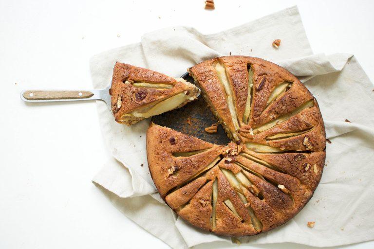 Door het herfstachtige weer krijg ik weer zin om te bakken. Niet dat ik per se zo van bakken hou, maar wel van de geur uit de oven en de sfeer dat bakken met zich meebrengt. Dat het buiten waait en regent en jij lekker binnen zit met een dikke trui, een kop koffie of thee en geniet van een een stukje vers gebakken taart. Zoals deze perentaart met kaneel en pecannoten. Heerlijk toch?