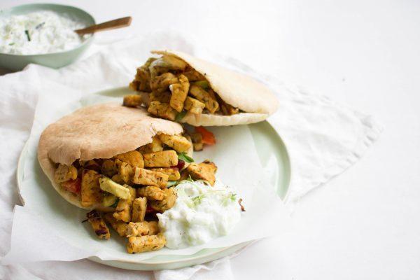 Houd jij bijvoorbeeld van een pita gyros met tzatziki, maak dan eens deze gezonde, vegetarische variant met gekruide tempeh.