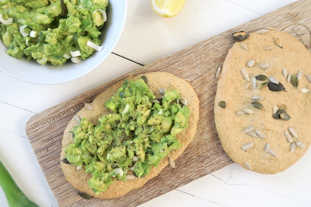 Ik smeerde deze pittige avocado spread op homemade broodjes van havermout. Als je lichaam gewoon lekker gaat op gluten kun je ook twee normale sneetjes brood nemen, maar het meest gezond zijn deze havermoutbroodjes. Met maar drie ingrediënten zijn ze zo gemaakt en weet je zeker dat je geen ongewenste rommel eet. En daarnaast vind ik vers afgebakken broodjes gewoon veeel lekkerder! Het recept van de havermout broodjes vind je hier.
