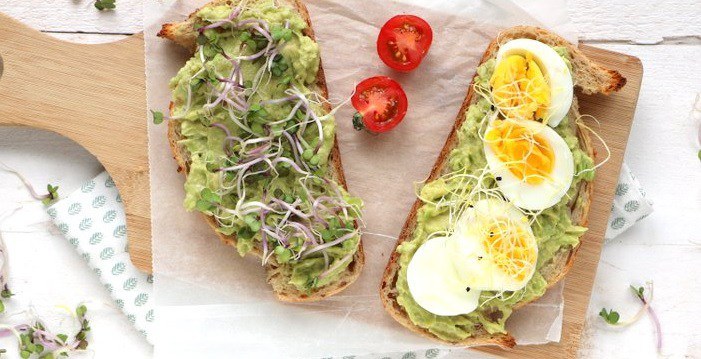 Vorige week was ik een dag aan het werk in het verre Brabant, in Oisterwijk om precies te zijn. Ik was voor een campagne uitgenodigd om naar de Leerfabriek te komen, daar waar de bakkerij van Robèrt van Beckhoven is gevestigd. Misschien doet die naam een belletje bij je rinkelen...? Ik ken hem van Heel Holland Bakt, maar ook van het feit dat hij een van de beste bakkers van Nederland is. Dus je begrijpt, toen ik helemaal in Brabant in de winkel van deze bakker stond, moest ik natuurlijk wat brood en ander lekkers mee naar huis nemen. Ik hou namelijk van goed brood, en dan lekker rijk belegd. Bijvoorbeeld met deze pittige avocadospread met wat kiemen en een gekookt eitje. Perfect als lunch!