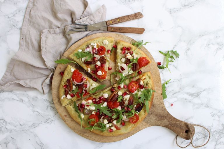 Misschien geen combinatie die meteen je verwacht op een pizza? Maar wel verrassend lekker! De granaatappelpitjes zorgen voor een heerlijke frisheid. En die kleuren zien er toch vrolijk uit?