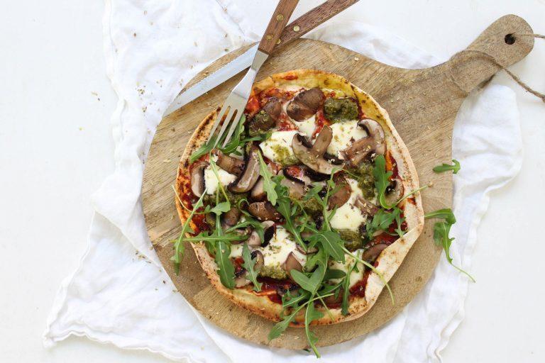 Door het Libanese brood als pizzabodem te gebruiken, krijg je een dunne knapperige bodem. De pizza is hierdoor minder machtig. Beleg met je favoriete toppings, even in de oven en klaar!