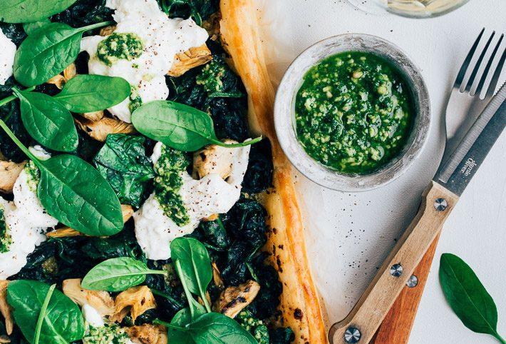 Ik gebruik altijd vers bladerdeeg op rol van Tante Fanny. Dit is én heel lekker én heel handig in gebruik. Je hoeft het niet te laten ontdooien en je kan het zo uitrollen (er zit bakpapier omheen) en beleggen. Je kan de rollen eventueel ook goed invriezen, leg ze dan de avond van tevoren in je koelkast om te ontdooien en je hebt hetzelfde effect. Je vindt de rollen vers bladerdeeg in het koelvak van de supermarkt (o.a. Jumbo en Dirk/Deka hebben het). Vaak ligt het bij de verse pizza’s of tussen gekoeld brood zoals focaccia of kruidenboter stokbroden. Het is vrij lang houdbaar dus je kunt het prima meebestellen met je wekelijkse boodschappen. Altijd handig om een rolletje in huis te hebben!