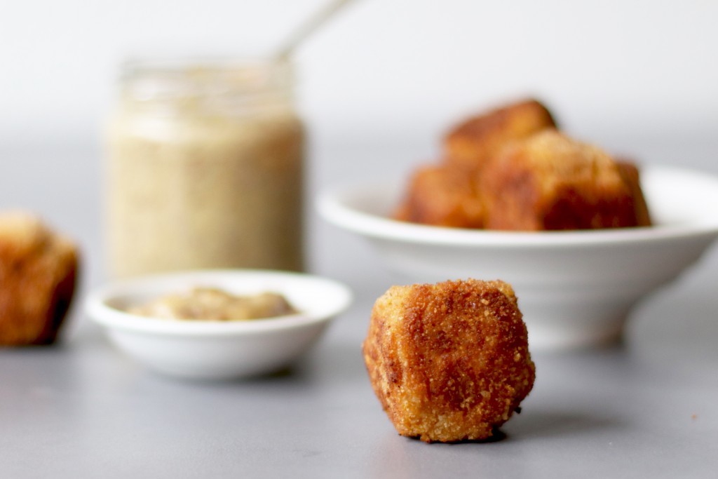 Ze zijn een stuk gezonder dan de bitterballen uit de winkel omdat ze een vulling hebben van pompoen en ze niet zijn volgepropt met zout. Je kunt ze bereiden in de oven of in een koekenpan. Ik probeerde het allebei en stiekem moet ik toegeven dat de bitterballen die ik in de pan bakte net even iets lekkerder – en bruiner – werden dan diegene in de oven, maar het kan dus allebei. Deze pompoen bitterballen zijn heerlijk in combinatie met een honing-mosterd dip. En ook nog eens glutenvrij!