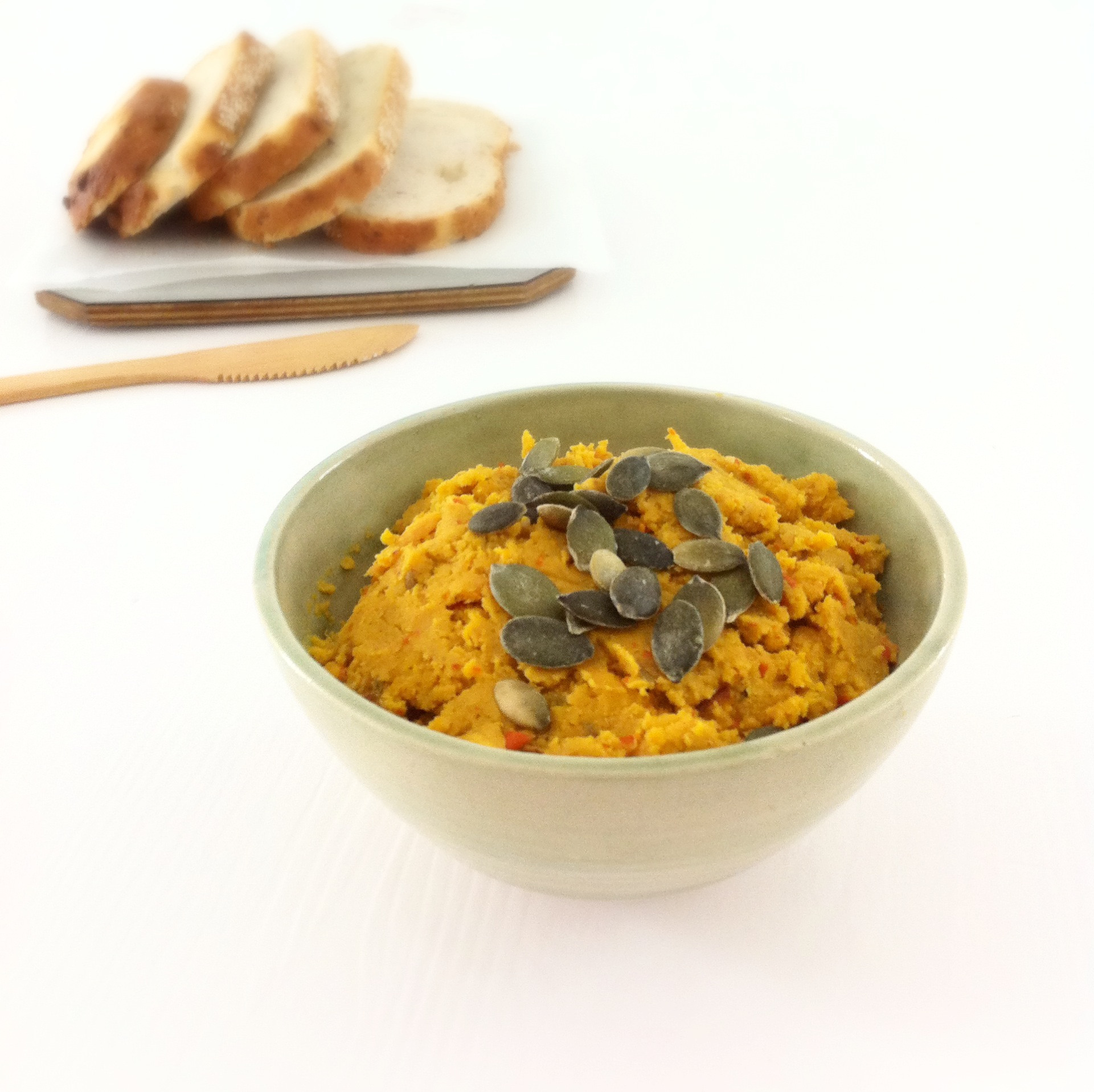 Verwarm de oven voor op 180 graden. Snijd de pompoen in blokjes. Leg de pompoenbokjes op een ovenplaat bekleed met bakpapier. Besprenkel met olijfolie. Rooster de pompoen ongeveer 30 minuten in de oven. Laat de pompoen afkoelen.