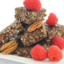 - Optioneel: Pecannoten en frambozen als garnering