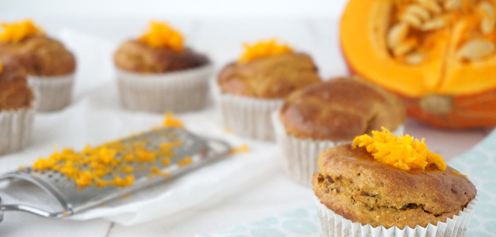 De herfst is begonnen en bij de herfst horen pompoenen! Gisteren liep ik nog op het strand, met mijn blote voeten in het zand! In het zonnetje dronk ik een glas witte wijn, wat nou... de herfst is begonnen? Ik geniet nog volop van deze Indian Summer, zeker nu het volgende week echt kouder gaat worden! En stiekem vind ik het altijd heel fijn als er weer een nieuw seizoen is aangebroken, want dat betekent dat er ook weer volop nieuwe, verse seizoensproducten te verkrijgen zijn. Zoals de pompoen dus. Een hele pompoen vind ik altijd vrij groot, te veel om in 1 keer door een gerecht te verwerken. Tenzij je pompoensoep gaat maken! Maar meestal hou ik nog een stukje over en daar kun je altijd nog wel wat mee doen, zoals deze pumpkin spice muffins met rozijnen bakken!