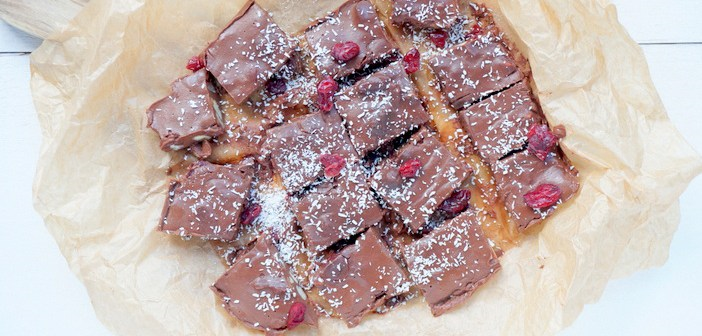 De kerst op mijn blog gaat in elk geval een beetje anders worden dan vorig jaar, ik kom niet met een kant-en-klaar kerstmenu, maar met een mix & match menu. Alle recepten die ik met je ga delen passen qua smaken perfect bij elkaar, en je kunt zelf je keuze maken uit het menu. Klinkt goed toch! Morgen meer info, en het eerste recept. Voor nu dus deze pure chocolade fudge met cranberries en gehakte noten. Ik weet dat hier weinig gezonds aan is, maar het is echt niet zo dat ik alleen maar de hele dag blaadjes sla, kommetjes havermout en boekweitpannenkoeken aan het eten ben. Ik snoep ook echt wel, en ik ben dol op pure chocolade. En dan zeker in combinatie met nootjes en gedroogd fruit!
