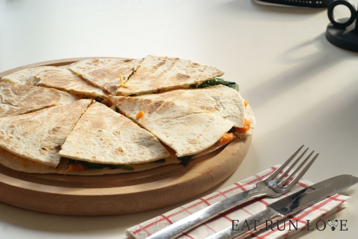 Afgelopen zondag liep ik de Duinentrail in Schoorl, 17 km lang genieten van het bos en ploeteren door het mulle zand. Je kunt je voorstellen dat toen ik thuis kwam ik ook best wel iets lustte. Met een knorrende maag ging ik aan de slag met quesadilla’s met zoete aardappel. Super lekker, maar toen ik na de lunch even de voedingswaarden ging uitrekenen kwam ik er achter dat dit gerecht wel heel veel calorieën voor een lunch bevatte (737 calorieën!). Oeps. Kun je nagaan hoeveel trek ik had! Voor de blog heb ik de hoeveelheid dus maar even gesplitst zodat het een normale lunch hoeveelheid werd.