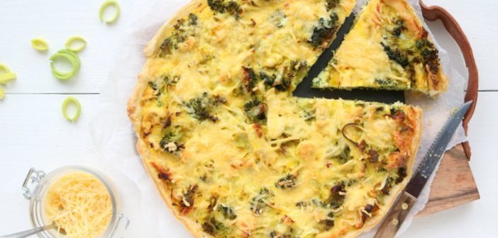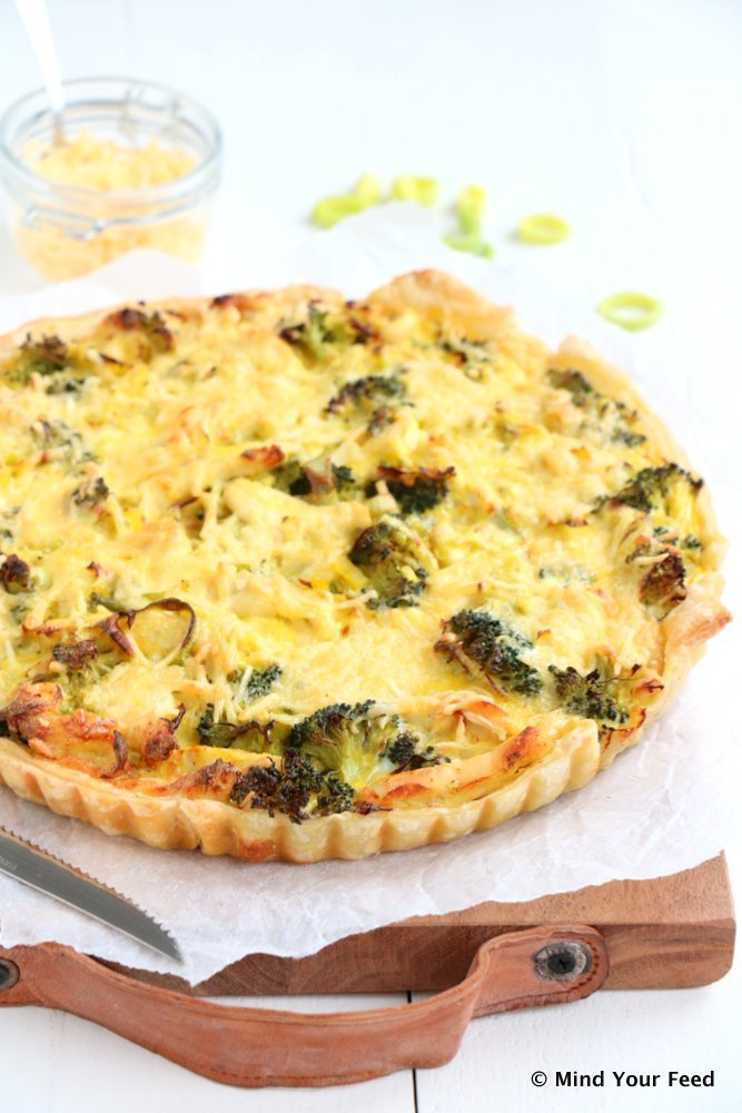 Langzaamaan begint de stress wel een klein beetje toe te slaan… Steeds als iemand zegt nog maar 4 weken, dan krijg ik een kleine zenuwinzinking. Nou ja, bij wijze van dan…. Ik probeer er toch echt zo relaxed mogelijk naartoe te leven, maar het is wel zo, de verhuizing staat echt al bijna voor de deur…. En om nou te zeggen dat ik er al klaar voor ben?! Ik vertel steeds maar weer dat ik alles onder controle heb, maar er moet echt nog wel het een en ander gebeuren. Tijd voor comfort food dus, om een beetje te ontspannen. En eten moet je toch, is de alom bekende uitspraak. Daarom schuif ik deze quiche met broccoli, kip en oude kaas de oven in!