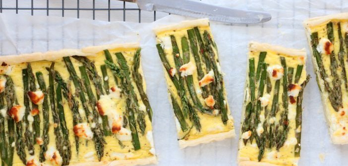 Zo langzaamaan begin ik na te denken over de Paasdagen. Ja, ik weet, dat is voor een foodblogger misschien rijkelijk laat. Maar ik steek gewoon niet zo in elkaar dat ik al in januari de Paasrecepten heb bedacht en in de zomer mijn Kerstmaaltijd alvast klaar maak en op de foto zet. Zo in de afgelopen weken schoten mij wat ideetjes voor een lekkere Paasbrunch te binnen. Waaronder dus deze quiche met groene asperges en geitenkaas. Leuk om in kleine stukjes te snijden en samen van te genieten.