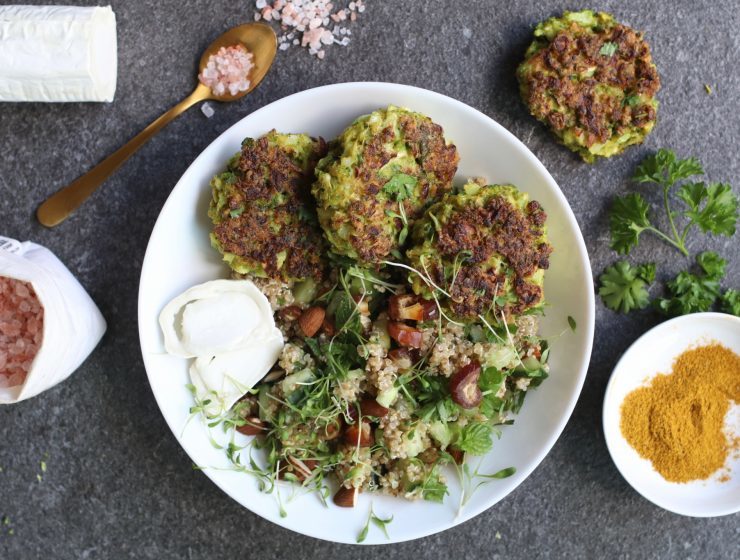 Quinoa salade met broccoli patties