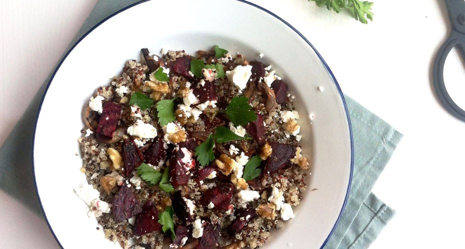Quinoasalade met geroosterde bietjes en geitenkaas
