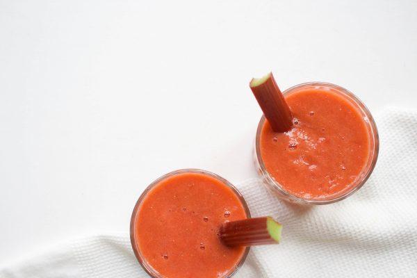 Wanneer rabarber te verkrijgen is, maak ik regelmatig deze rabarbercrumble. En wat dacht je van een rabarbertaart? Maar het vaakst maak ik deze rabarber-aardbeien smoothie!