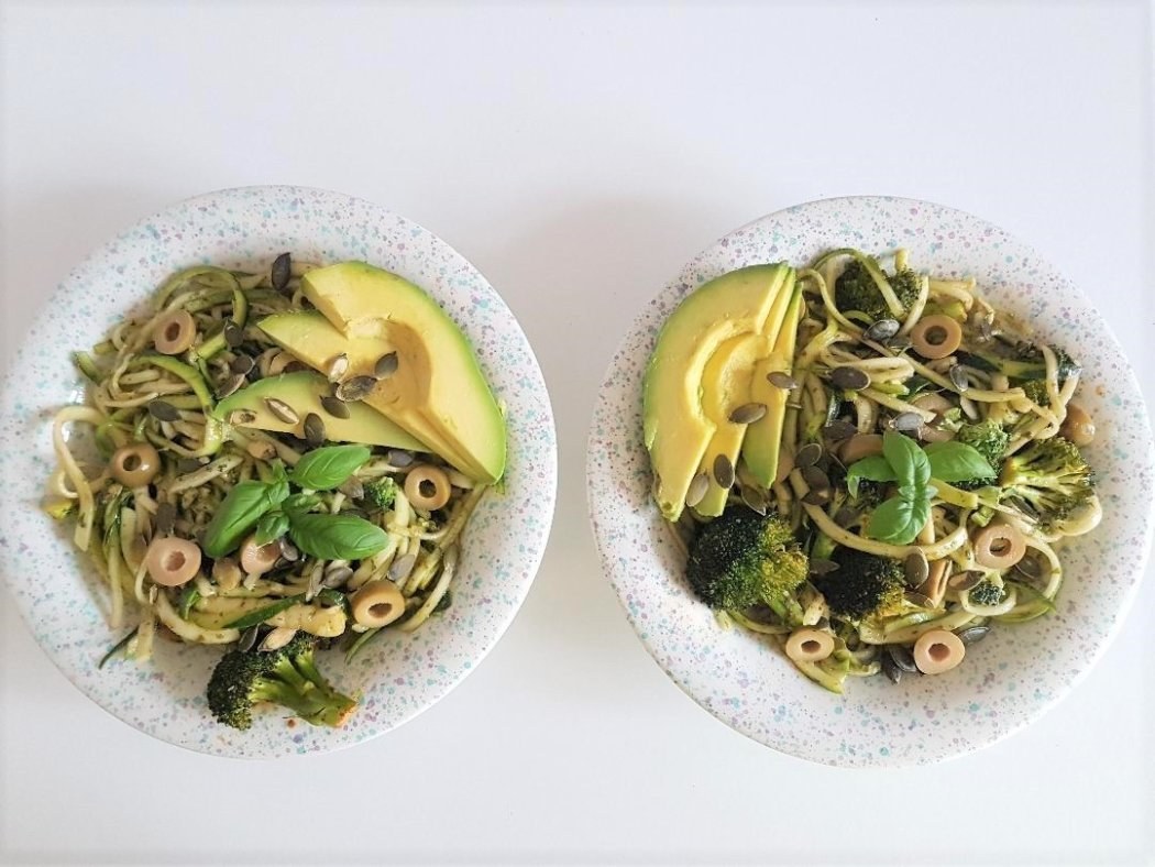 Wat ik het lekkerst vind is om deze pasta raw te eten. Courgette is rijk aan vitamine B en C en je kunt het gewoon rauw opeten! Vooral tijdens de wat warmere dagen zoals we laatst hebben gehad is het heerlijk om het rauw te eten, omdat het dan lekker koud en verfrissend smaakt. Daarnaast is courgetti gemakkelijk te maken. Wel is het handig als je een spiraalsnijder hebt, want hiermee maak je mooie slierten à la spaghetti style. Dit kun je heel makkelijk online bestellen voor een laag prijsje! Je hebt ook handige apparaten die automatisch spaghettislierten kan maken van courgette, maar dit is uiteraard wel wat duurder. Ik heb een kleine groente en fruit snijder waarbij je zelf de slierten moet maken en dit werkt prima!