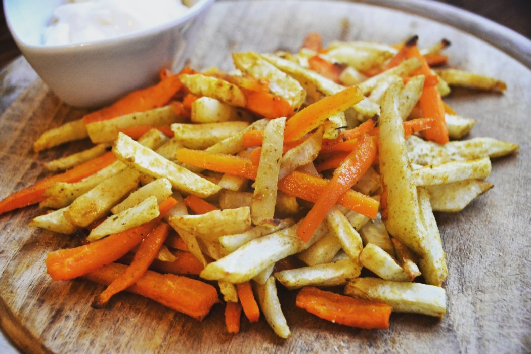 Het het winterseizoen zie ik weer de knolselderij in de schappen verschijnen. Ik heb nog nooit knolselderij gegeten, maar omdat ik het dit keer in de aanbieding zie neem ik er toch maar één mee. Eenmaal thuis ga ik verder op onderzoek uit. Ik snij de knolselderij door de helft en ruik er aan. Hmm…ok. Ik heb geen idee wat ik er van kan verwachten. Ik proef er een beetje van terwijl het nog rauw is. Hmm…interessant. Ik besluit om het te schillen, in kleine reepjes te snijden en het daarna in de oven te doen. Oh ja,ik doe er een wortel bij om meer kleur aan het geheel toe te voegen. Met regelmaat loop ik heen en weer om te kijken of het allemaal goed gaat in de oven. Na een tijdje haal ik ze eruit. Het blijkt uiteindelijk heerlijk te zijn! Tevens een simpele manier om meer groenten te eten 🙂