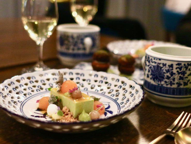 Stiekem verwacht ik bij een Chinees restaurant altijd een knalrode inrichting en een overvloed aan Chinese tekens of andere typisch Chinese elementen. Beetje bevooroordeeld, i know ;) Het interieur van Zheng is daarentegen verrassend modern met mooi blauwtinten, visgraat vloer en hier en subtiele gouden accenten. Via de onlangs vernieuwde Imperial Bar kom je in het restaurant. In deze kleine, maar fijne bar kun je terecht voor thee infused cocktails en luxe bar bites. Verwacht geen bitterballen, maar kleine versies van de gerechten uit het restaurant. Wij aten in het restaurant en namen een combinatie van barfood en gerechten van het restaurantmenu, dat bestaat uit verschillende chapters.