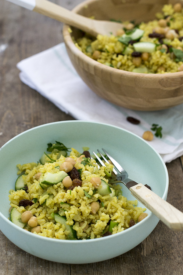 De komende week staan de recepten op brendakookt.nl in het teken van ‘picknicken’ en lunches to go. Deze rijstsalade is namelijk geschikt om van te voren te bereiden, en te bewaren. De salade wordt niet slap of verlept omdat er geen dressing aan is toegevoegd. Wel is de salade goed op smaak. Ideaal om mee te nemen in een bakje naar het werk, of tijdens een dagje weg.