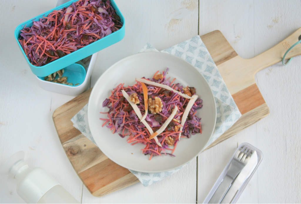 Een salade bij de lunch, ik ben er gek op. Ik heb mezelf voorgenomen om meer te experimenteren met verschillende soorten groente. Ook ik merk dat ik in een cirkeltje van groente (zoals courgette, paprika, prei, spinazie, komkommer, wortel en sperziebonen) blijf ronddraaien. Niks mis mee, alleen meer variatie kan geen kwijt. Aan de slag met een rode kool salade dan maar.