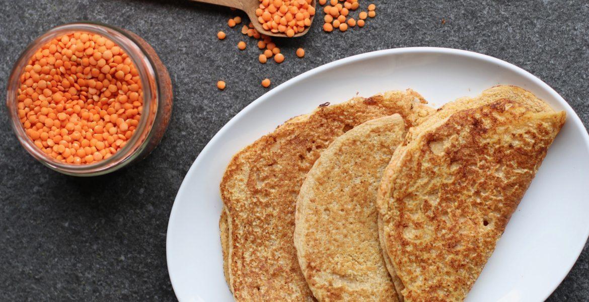 Oké, linzen dus. Geen kant en klare linzen uit een potje (probeerde ik, mislukte faliekant), maar gewoon gedroogde rode linzen. Eet deze rode linzen wraps als lunch met gerookte zalm, kiemen en een dot zure room of als avondeten met gegrilde veggies en pesto. Mijn volgende project is om wat cacao en honing door het beslag te doen en er chocolade wraps van te bakken voor in de ochtend. To be continued! Voor nu vind je hieronder het basisrecept voor de linzenwraps. Hoe ga jij ze vullen? Vertel het me in een comment onderaan het artikel, vind ik leuk :)