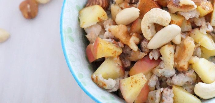 Een receptje uit de oude doos. Of nou ja, eigenlijk is het recept hartstikke nieuw op de blog, maar het is geen recept dat ik kort geleden heb uitgewerkt. Maar dat maakt het niet minder lekker natuurlijk, en eigenlijk vind ik dit wel een typisch Mind Your Feed ontbijtje. Makkelijk voor doordeweeks, als ik toch net niet heel erg ruim in mijn tijd zit. Je zou denken dat ik nu in de vakantie uitgebreid de mogelijkheid heb om een hotel-waardig ontbijtbuffet op tafel te toveren, maar dat is niet zo. Dit recept voor roer ei met appel, kaneel en noten is al een paar keer mijn redding geweest op een drukke ochtend.