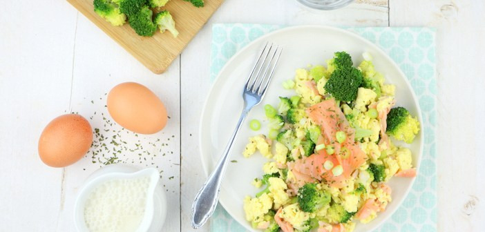 Roerei met zalm en broccoli