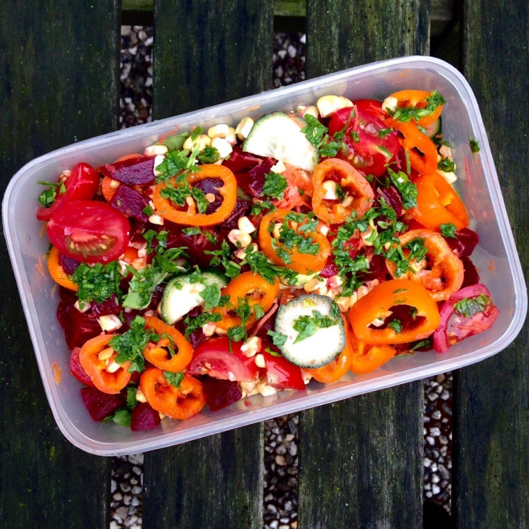 Wat is er nu fijner dan een heerlijke salade meenemen voor onderweg? Het is weer een drukke periode, kids weer naar school en je wilt toch gezond blijven eten dus super easy kun je deze meenemen naar je werk of school. Enjoy!