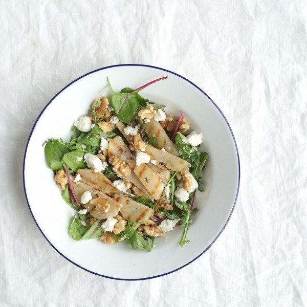 Al hebben we in de herfst en winter vaak meer zin in warme gerechten en comfort food, toch blijf ik graag salades eten. Maar vaak wel lauwe/warme salades, zoals deze salade van gegrilde peer. Het is het seizoen van de peren. Vooral warme peer wordt veel gegeten in de herfst en winter. Dat betekent dat de winkels er vol mee liggen, ze goedkoop zijn en het lekkerst!