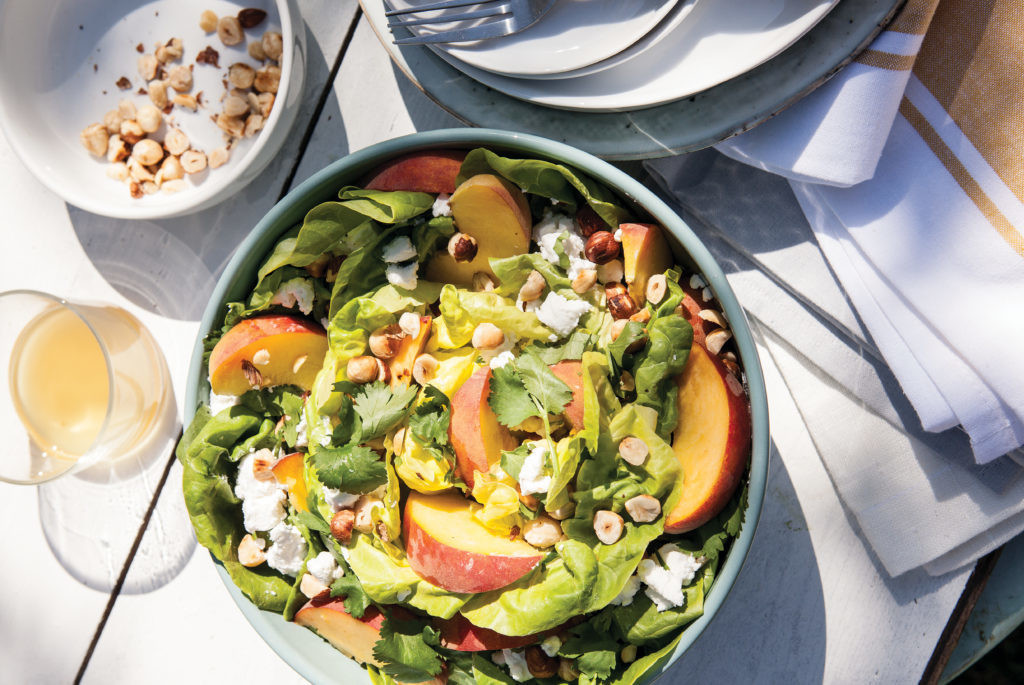 Met zomers weer heb ik eigenlijk nooit zin in een heftige, warme maaltijd. Dan heb ik liever een lichte salade! Deze lekkere salade met geitenkaas en perzik heb ik uit het boek van de Saladebar van 24Kitchen. Dit receptenboek staat vol salades. Salade-inspi genoeg dus! Als je ook wat inspi nodig hebt, kun je het boek hier bestellen. En kijk vooral naar de 24Kitchen Zomerspecial, waar ze allerlei heerlijke zomerse recepten laten zien! Het is niet voor niks een zomer voor Food Lovers bij de zender.