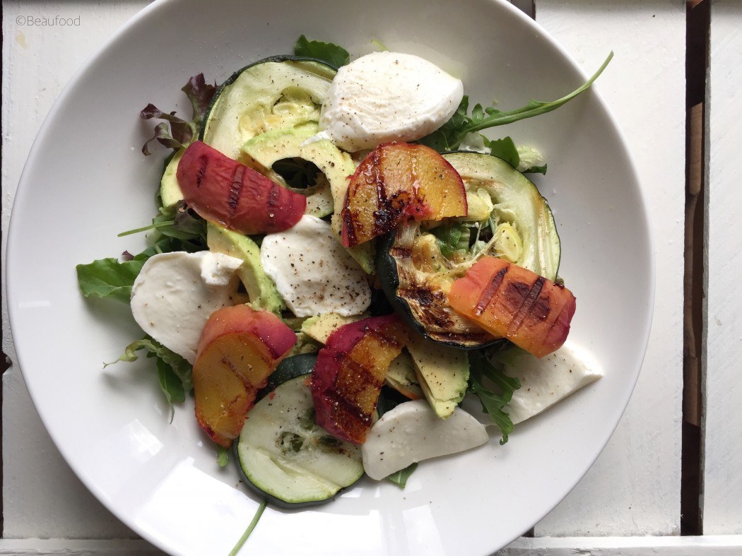 SALADE MOZZARELLA MET GEGRILDE PERZIK EN BALSAMICO
