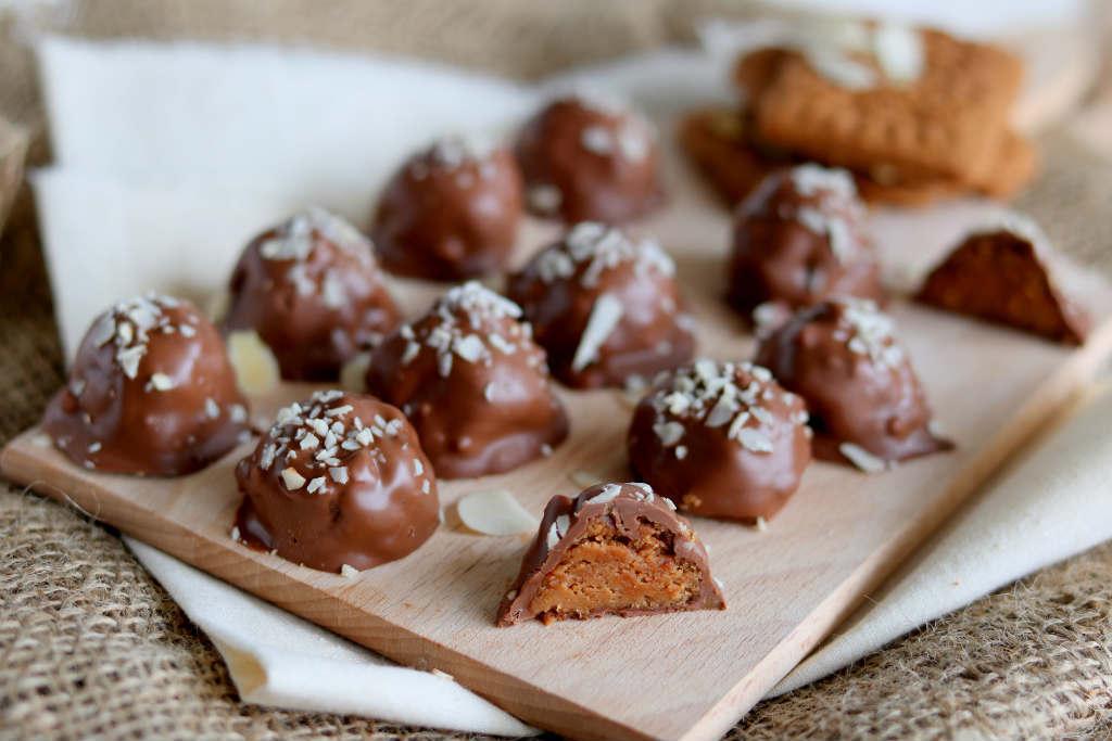 Met dit Sinterklaas recept ben ik wel een beetje out of my comfortzone gegaan. Zo vaak maak ik niet “echt” zoete recepten. Bij Keukenliefde zag ik deze speculaas truffels met witte chocolade voorbij komen. Ik ben nog net niet naar de winkel gerend om inkopen te doen. Een combinatie met salted caramel leek mij fantastisch. Alleen hadden wij hier al 1 van de 2 repen opgegeten voordat ik aan de slag ging met de speculaas truffels. Misschien maar goed ook, want ze zijn echt verslavend lekker.