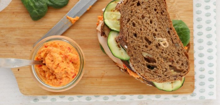 Die goede oude boterham blijft de gemoederen maar bezig houden... We hadden natuurlijk al een hele broodhype, waarbij het bammetje in de ban gedaan werd, maar sinds ie niet meer op tafel mag komen verschijnt er elke week wel weer nieuw bewijs om brood toch echt voor goed en altijd van de kaart te strepen. Boe, ben ik het niet mee eens! Met brood is echt niets mis, mits je maar voor een goede boterham zorgt. En áls je dan brood eet, en ik doe dat eigenlijk echt niet zo vaak, máák er dan ook een goed feestje van! Beleg driedubbelop en zorg dat je een sandwich maakt die zo dik is dat ie bijna niet meer in je mond past... Met deze sandwich met kip en gegrilde groenten slaag je daar zeker in!