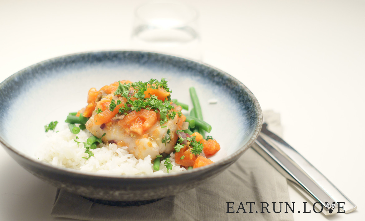 Tegenwoordig probeer ik minimaal één keer per week vis te eten, dus ik ben de laatste tijd een beetje aan het experimenteren met hoe ik dat dan eet. Dit keer maakte ik schelvis met tomatensaus met lekker veel kruiden, ansjovis en een beetje witte wijn voor een heerlijke smaak.