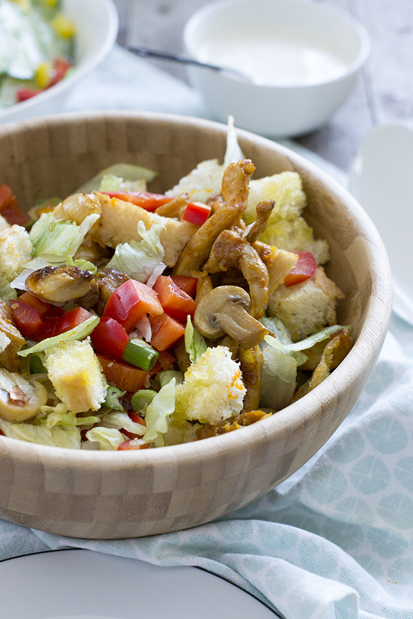 Op een warme dag zouden we broodjes kipshoarma eten, maar had ik geen trek in warm eten. Ik wilde een salade maken maar moest nog even bedenken wat ik er in zou doen. En toen bedacht ik me dat ik zou proberen een salade van de shoarma te maken. Met succes, zelfs de boyfriend die gek ik op broodjes shoarma (en iets minder gek is op salades) vond dit lekker.