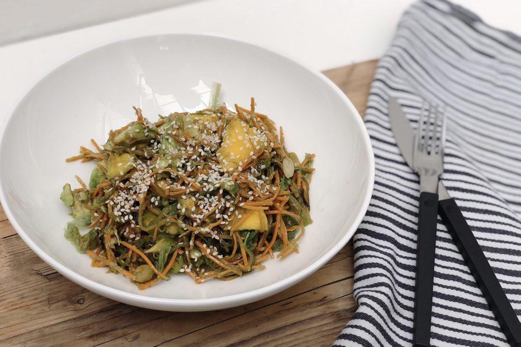 Wij vonden deze salade het lekkerste als bijgerecht. Natuurlijk kun je deze salade ook eten als maaltijd met wat tempeh, garnalen of kip.