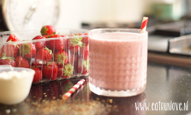 Terwijl ik door mijn foto's aan het heen scrollen was, zag ik ineens dat ik deze smoothie met rood fruit nooit heb gedeeld. De foto's vond ik te mooi om niet te delen en ondanks dat het geen aardbeientijd meer is, kun je deze smoothie ook makkelijk met rood fruit uit de diepvries maken. Deze smoothie vind ik heerlijk in de ochtend als ontbijt of na een zware workout.