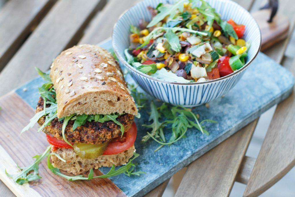 Door de weeks wil ik niet te ingewikkeld koken. Dan kom ik pas rond 19.00 uur thuis, al dan niet met boodschappen. Eigenlijk wil ik dan gewoon dat het eten in 15 minuten of minder op tafel staat. In 15 minuten kan ik nog heel wat op tafel krijgen. Ik zit nu in de burger-bouwen-fase. Eerlijk is eerlijk, in 15 minuten krijg ik het niet voor elkaar om zelf een gezonde burger te maken. Al helemaal niet omdat ik sinds een tijdje vegan eet. Vegan burgers zijn niet super ingewikkeld, maar toch stiekem nog wel tijdrovend. Daarom kies ik er door de weeks voor om kant-en-klare vegan burgers te kopen. In mijn huge Albert Heijn zijn er onder andere de bietenburgers waar ik ontzettend fan van ben. Maar ben je niet vegan, dan kan je dit natuurlijk ook gewoon met een vleesburger maken. Kies dan wel voor een magere variant, of een kipfilet!