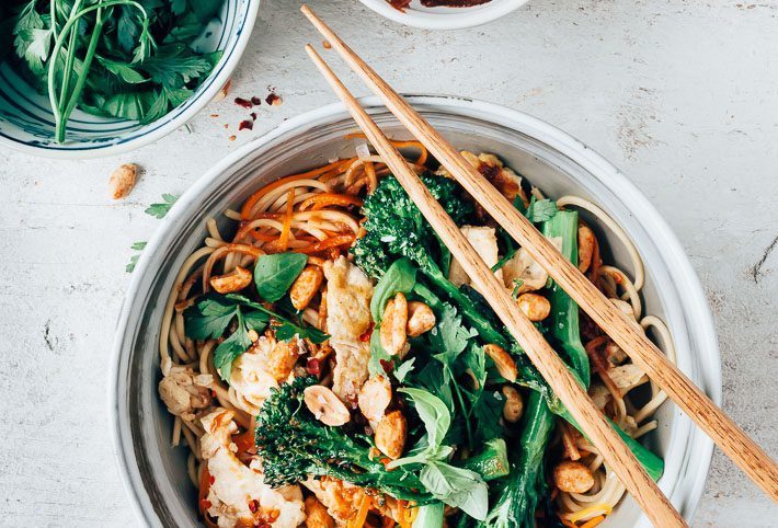 Ook heel fijn aan dit gewokte groenten recept, je hebt nauwelijks snijwerk! In dit recept gebruik ik bimi en wortel. Aan de bimi hoef je niets te snijden (tenzij je niet van die grote stukken houd, dan kun je ze halveren). De wortel kun je dus al gesneden kopen. Ik bedoel de in julienne gesneden wortel. Daar is niets mis mee. Vaak zijn voorgesneden groenten heel grof en lomp gesneden. En zit je op van die grote stukken te bijten. Niet lekker wanneer je ze in een soep of saus verwerkt en ook niet mooi. Vind ik dan. Sterker ik snijd alles (per groentesoort want ik houd dan wel weer van afwisseling, de wortel niet hetzelfde als de courgette) ook nog in zo gelijk mogelijke stukken en niet alleen omdat ze dan mooi gelijkmatig garen (wat ook een hele goede reden is), maar ook omdat het mooier staat. Een kleine kookafwijking! Maar met die julienne gesneden wortel is dus niets mis en kun je bij tijdgebrek prima gebruiken.
