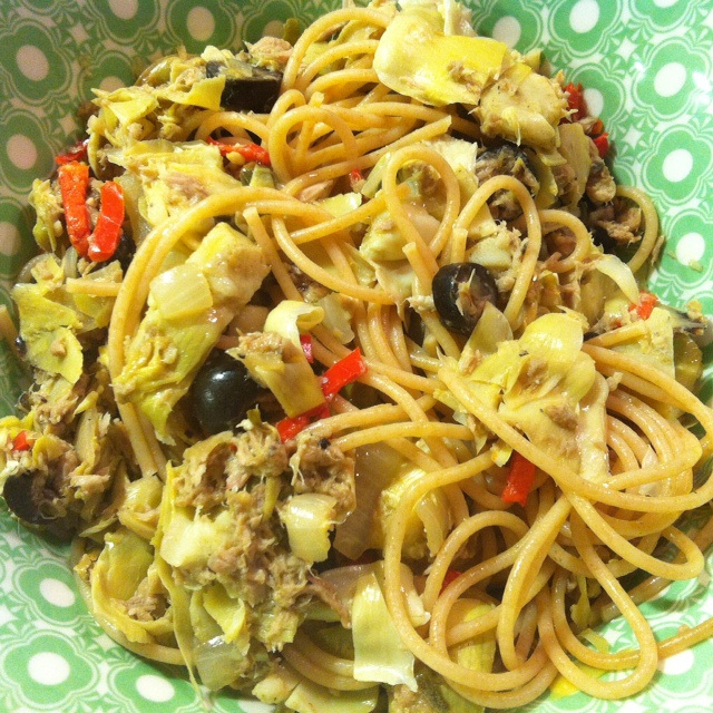 Deze pittige pasta is een van mijn favorieten als ik geen tijd heb om uitgebreid te koken maar toch nog een beetje een verantwoord maaltje wil! Met een beetje geluk heb je alle ingrediƫnten in de voorraadkast en staat ie in ongeveer 10 minuten op tafel!