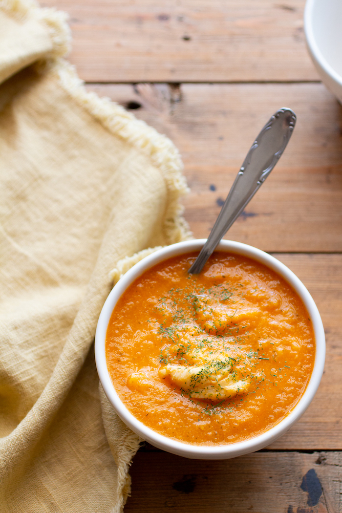Zoals je misschien wel weet, ben ik ontzettend fan van soep. Champignonsoep, kippensoep, pompoensoep, mosterd-courgettesoep, aspergesoep, ‘erwtensoep’, preisoep. Noem het maar op en je vindt er een recept van op EetPaleo. Totdat ik een mailtje kreeg van een lezer die vroeg of ik ook weleens vissoep had gemaakt. Eerlijk gezegd houd ik zelf niet zo heel erg van de uitgesproken smaak en dus ben ik meteen de keuken ingedoken om een wat meer toegankelijke en super simpele variant te maken, met deze Snelle Vissoep als resultaat!