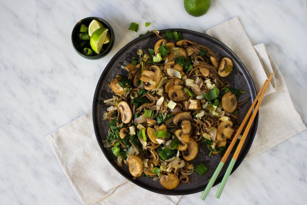 Deze soba noedels, champignons en zelfgemaakte hoisin saus zijn een heerlijke combinatie! De limoen geeft het gerecht een fris tintje.