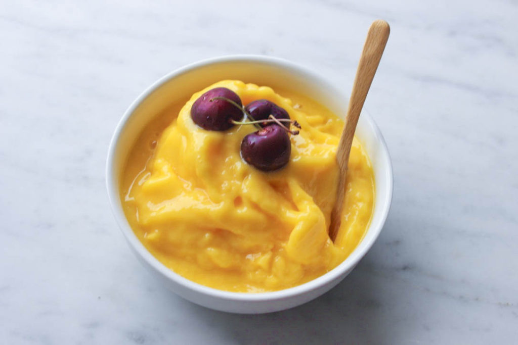 Heerlijk die zomervibes; genieten van de zon, zwemmen, eindelijk weer tot ’s avonds laat buiten zitten. Die vibes zijn natuurlijk niet compleet zonder een verkoelend ijsje! Als je op zoek bent naar een healthy (en vegan) alternatief voor een vette magnum, heeft veganblogger Sanne van livingthegreenlife.nl weer een heerlijk receptje voor je. Dit sorbetijs van verse mango heeft maar twee (!) ingrediënten, dus perfect om tussendoor in je schaduwmomentje te maken! Kun je daarna weer in de zon liggen. Wel moet een goedeSPF hė 😉