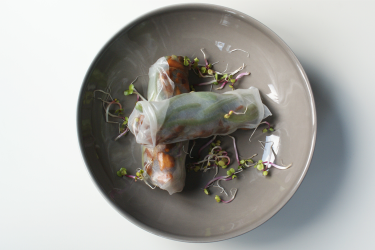 Spring rolls, ik zag ze op een hoop blogs voorbij komen en toen ik zelfs bij de Jumbo hier in het dorp rijstpapier tegen kwam kon ik toch echt niet achterblijven. Er staan veel recepten met garnalen online en met koude groente. Inmiddels vind ik het weer geschikter voor een warme variant.