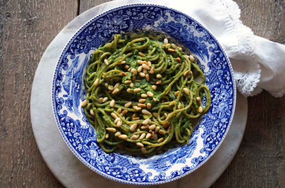 Oké, dit is dus het meest simpele pastagerecht ooit. Het duurt niet langer dan 10 minuten om het te bereiden. En dan heb je wel echt een hele gezonde pasta op tafel staan. Want de saus, de pesto, is gemaakt van enkel goede en gezonde ingrediënten. Je zou dit gerecht nog gezonder kunnen maken dan het al is door geen gewone pasta te gebruiken, maar door in plaats daarvan "spaghetti' te maken van courgette met een spiraalsnijder. En oh ja, de limoen is best wel aanwezig, ik vind dat heel lekker, maar als je niet zo'n fan bent van limoen kun je beter het sap van een halve in plaats van een hele gebruiken en er twee eetlepels water aan toevoegen. Op naar het recept!